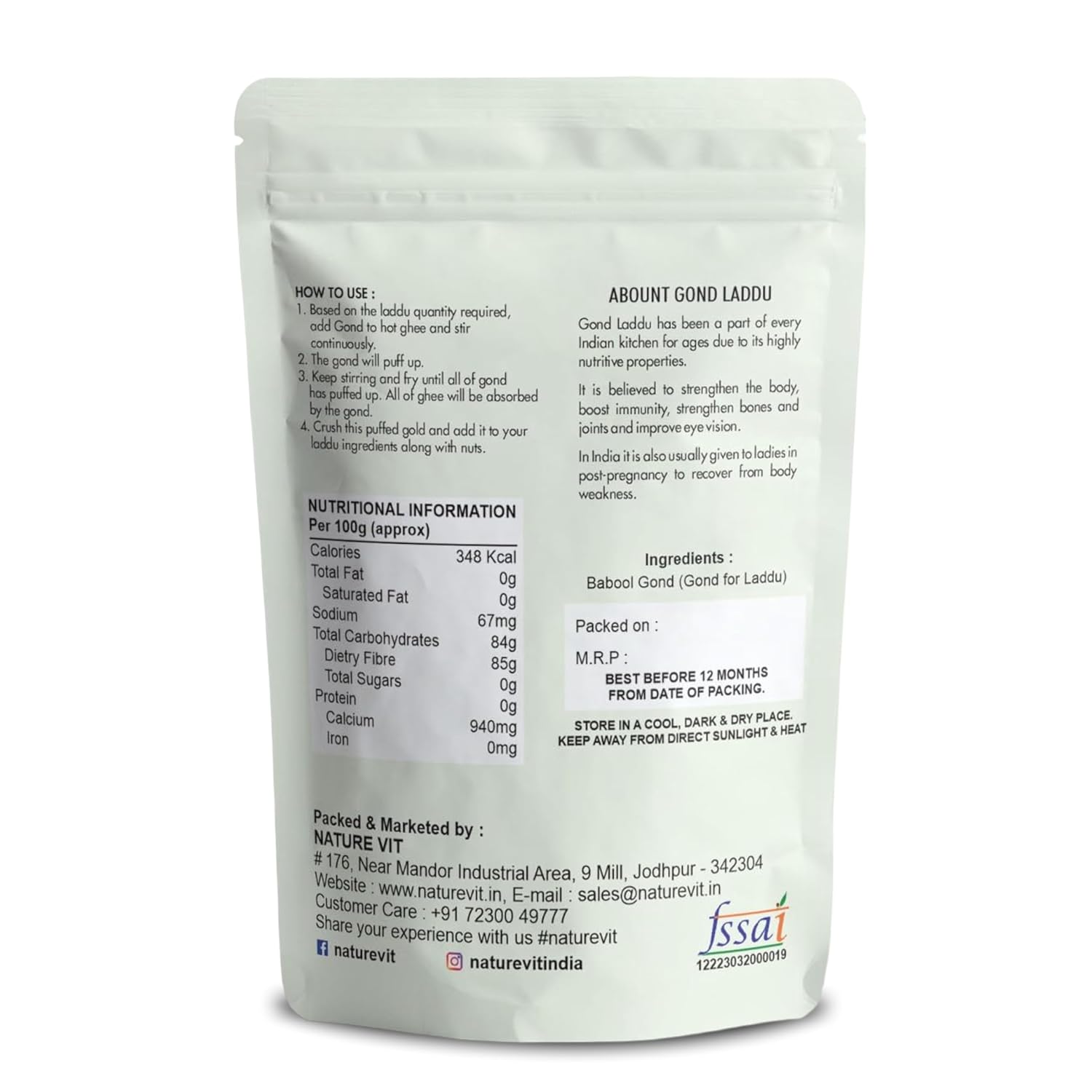 Enhance your traditional Indian sweets with NatureVit Babool Gond, a premium quality edible gum sourced directly from the Babool (Acacia) tree. This natural ingredient is essential for preparing nutritious ladoos and other confections, offering both taste and health benefits.Key Features: