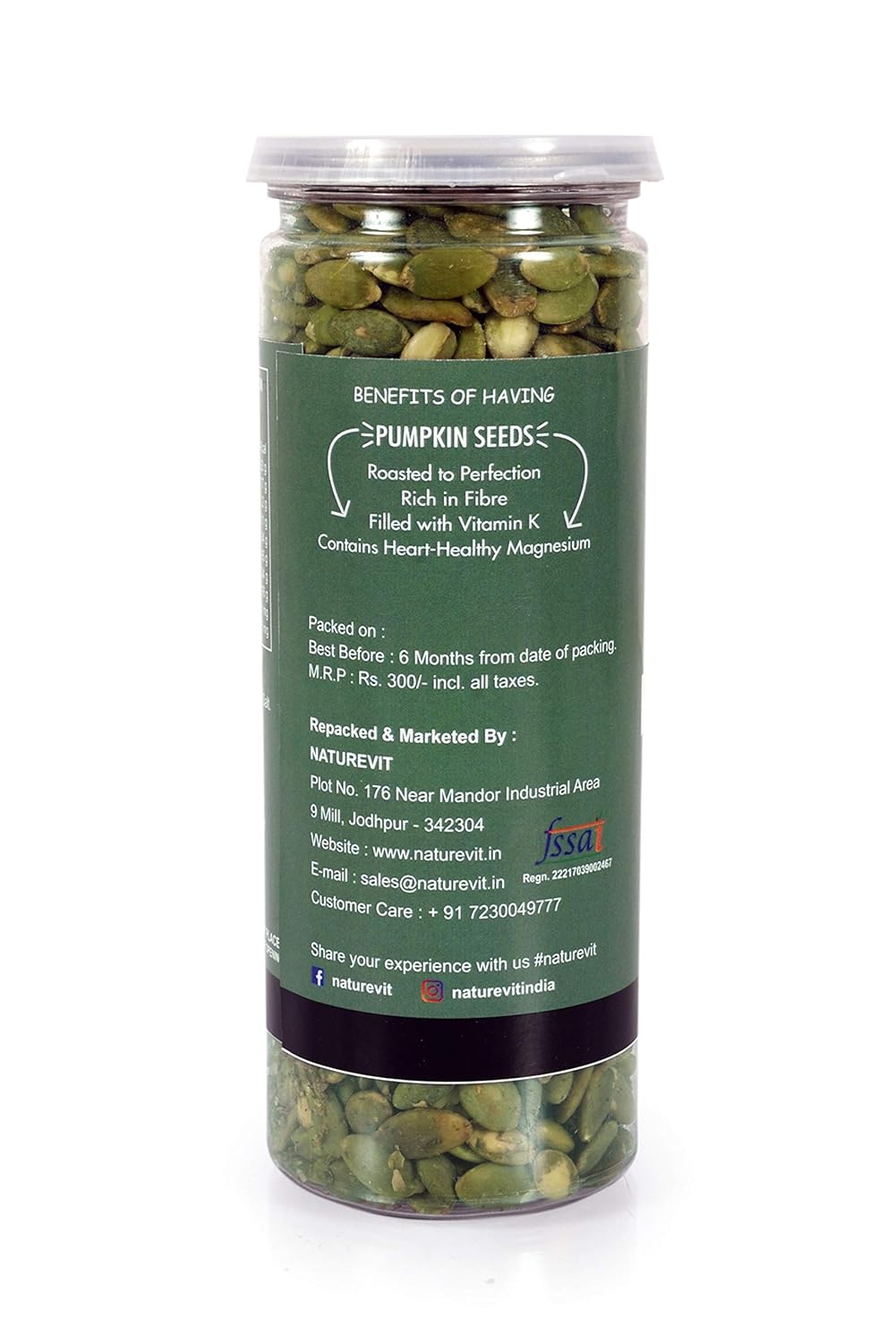 NatureVit Roasted Pumpkin Seeds – Lightly Salted | Healthy Snack | High Protein | Crunchy & Nutritious